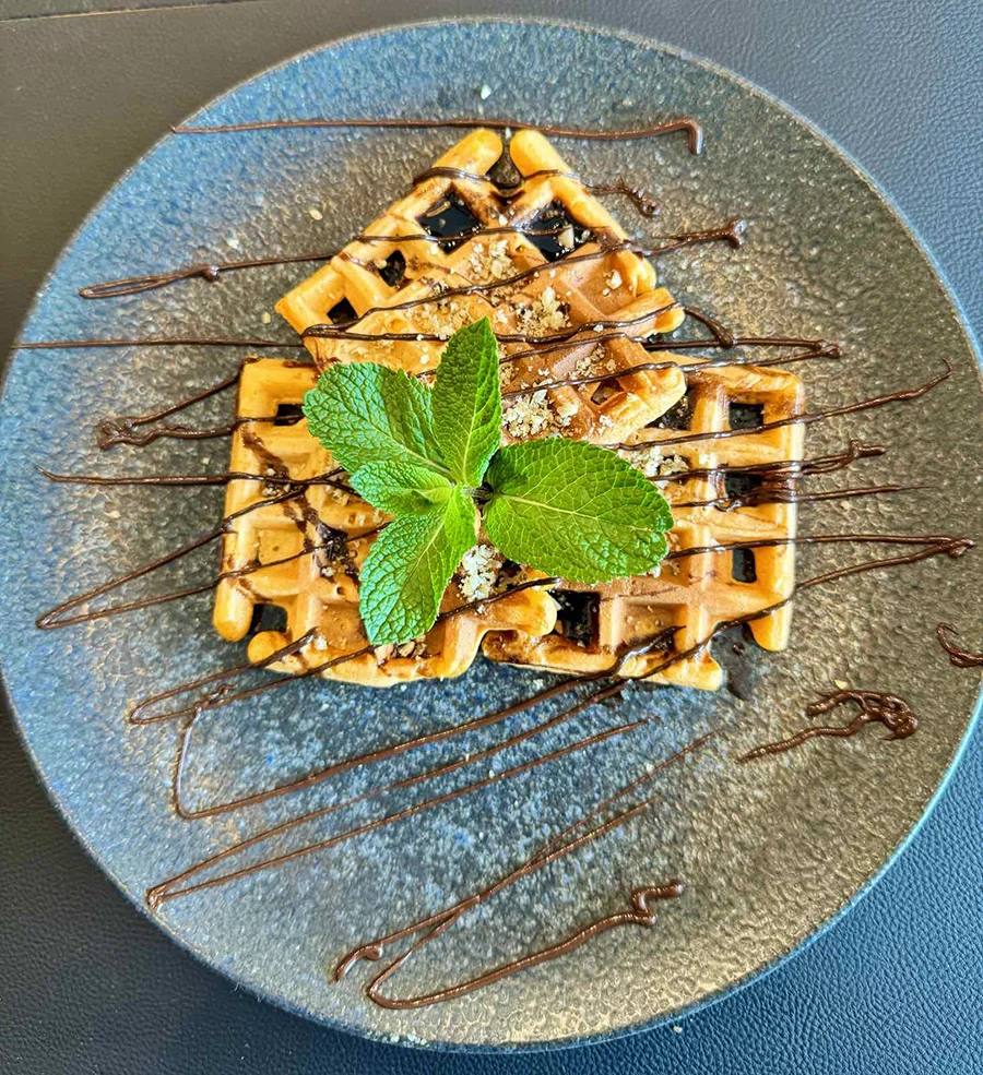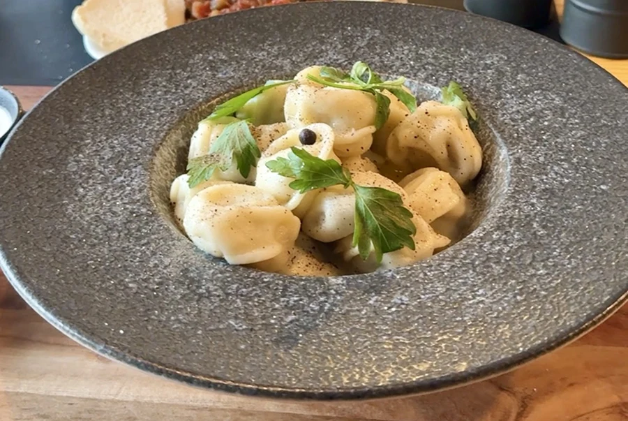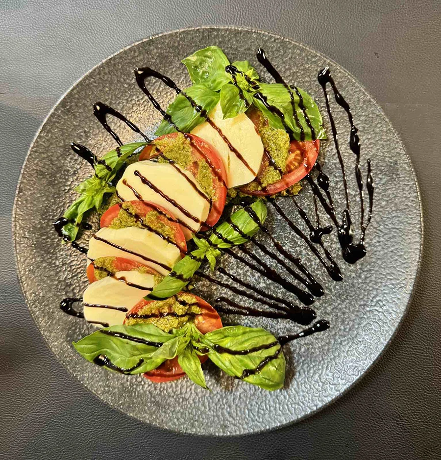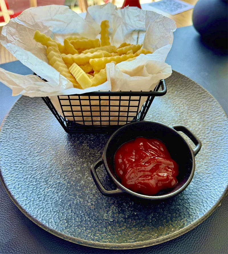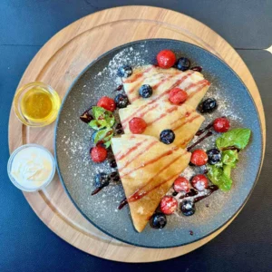 croissant, șuncă, brânză, roșii, castraveți, ierburi aromatice