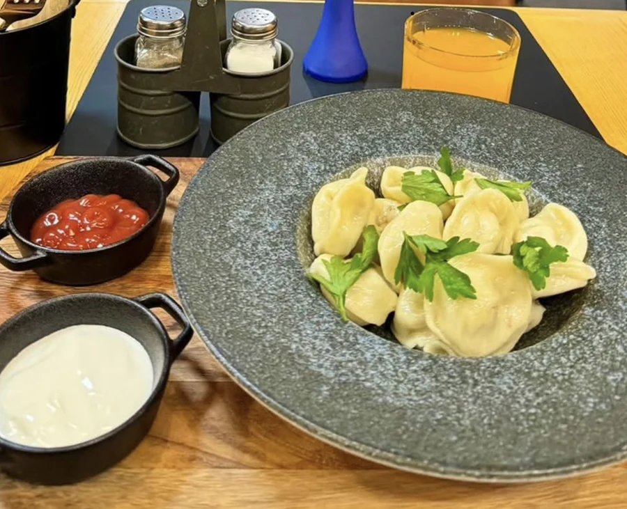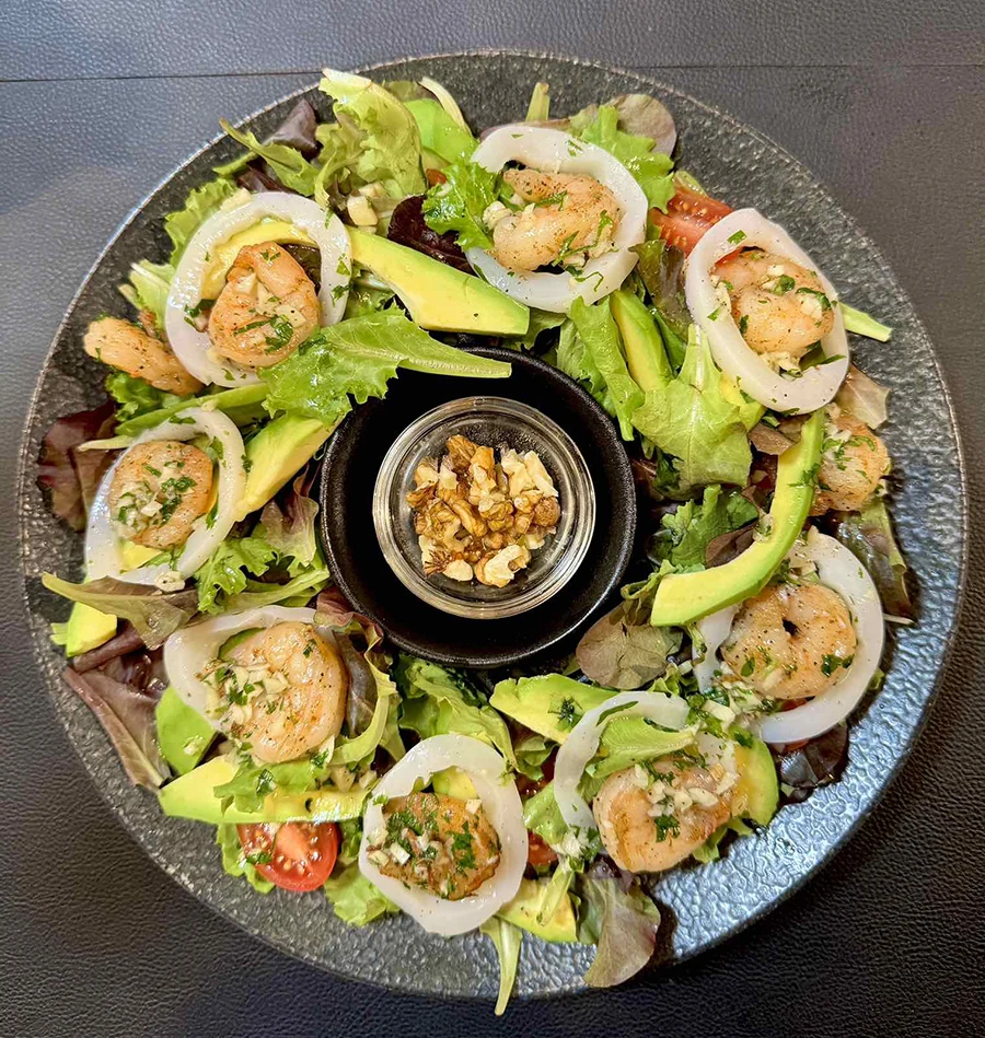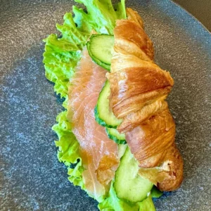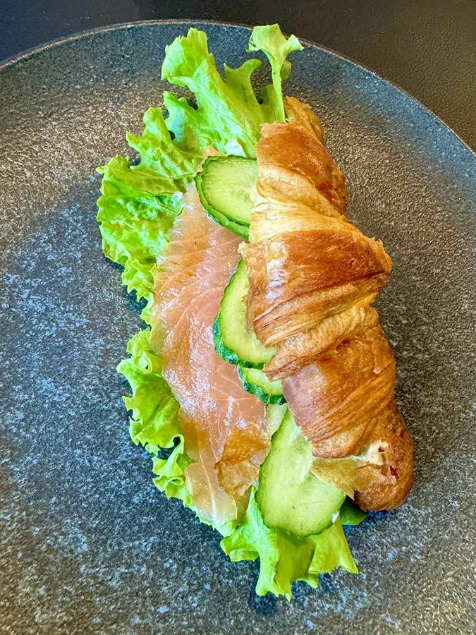 croissant, somon, brânză californiană, castravete, ierburi aromatice